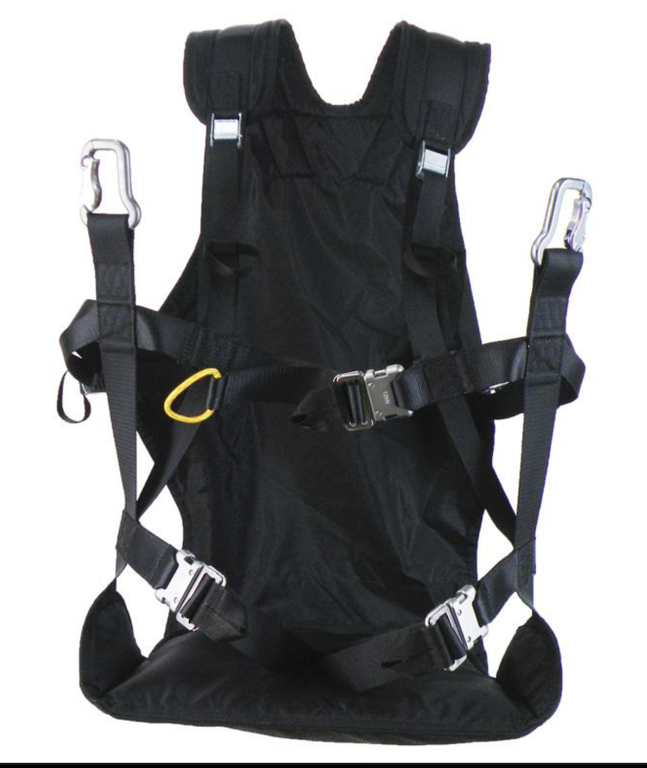 First – A simple and uncluttered harness for teaching or soaring flights. ABS control, and enough adjustment to fit all but the largest and very smallest of pilots. Strong, lightweight and durable. The classic starter harness. Also used for Bivouac and high mountain flights.